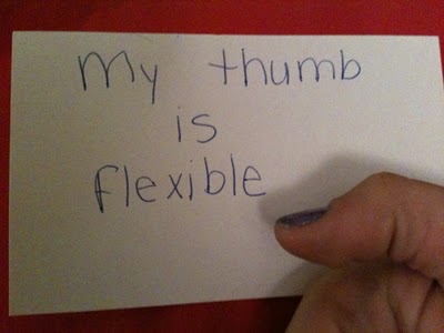 (OH, btw, bonus points for you if you noticed I used both my left AND right thumb in this. I'm pretty tricky, I know. And.... I lost the game)